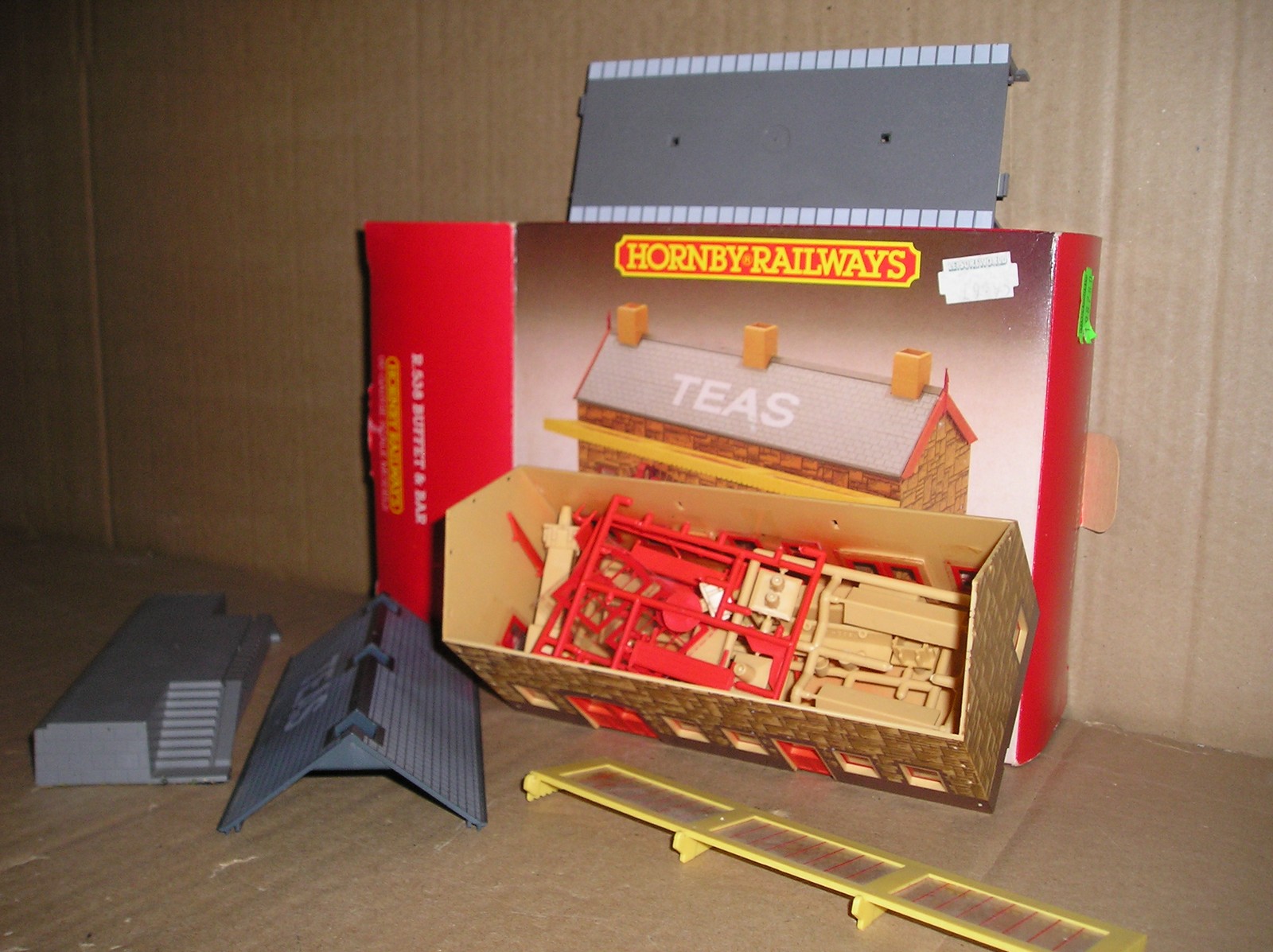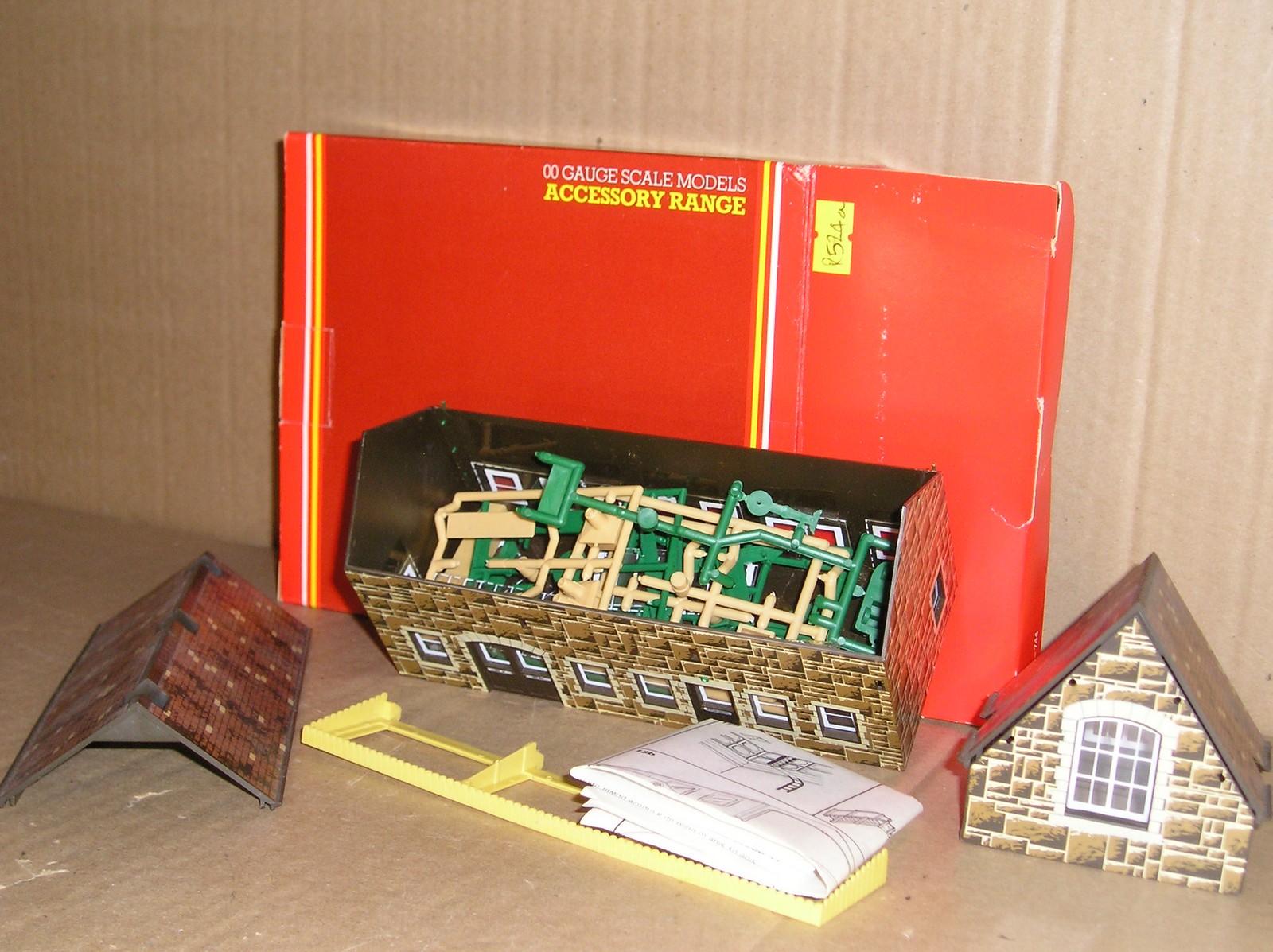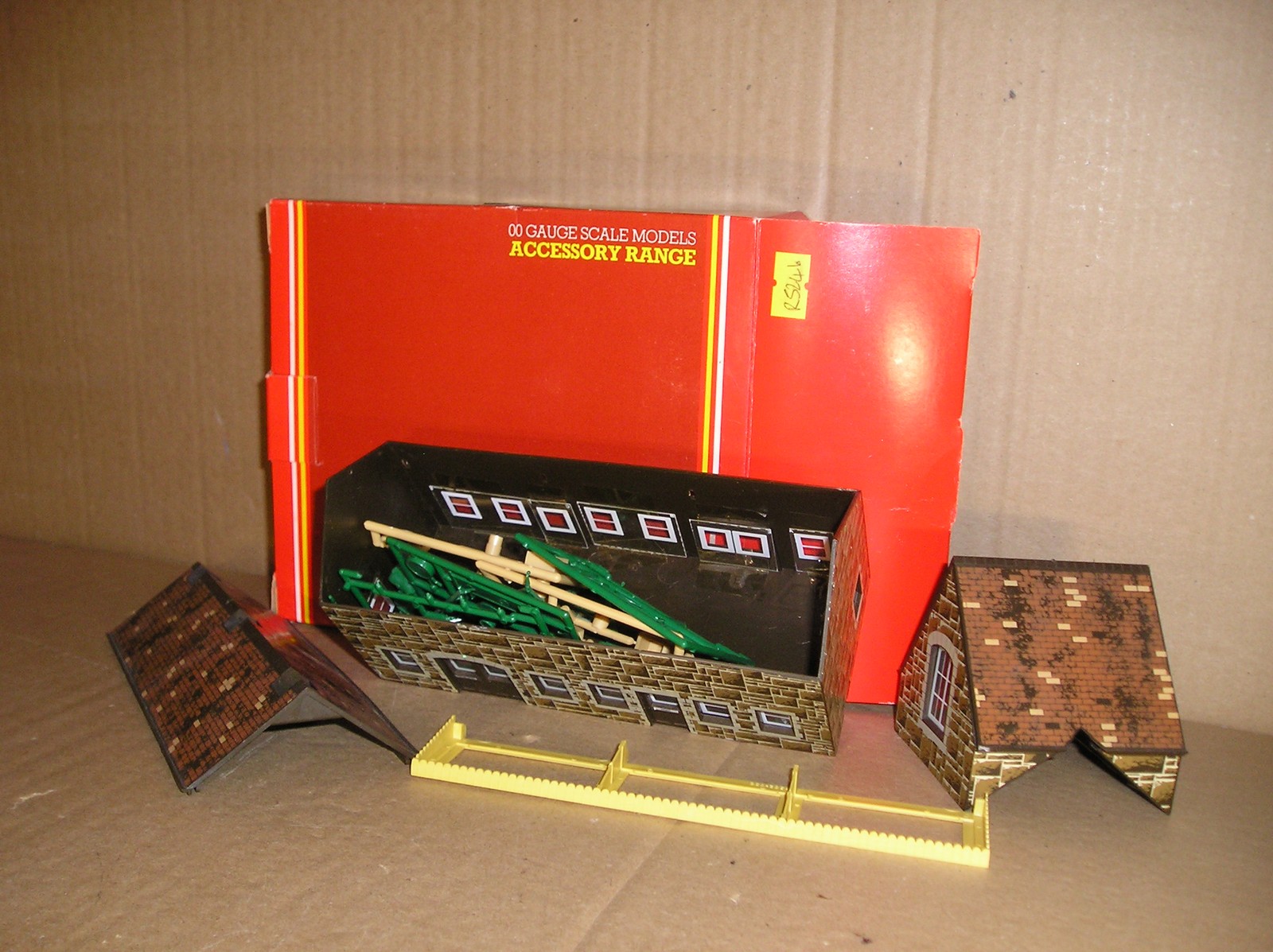 BB0003-6, Hornby job lot of station buildings, projects. R522 Goods Shed, R523 Waiting Room, R524 Booking Hall x 2, R538 Buffet & Bar and R590 Wayside Halt, all in kit form, all boxes have one or two label remains and maybe the odd defect, loads of parts to be added to buildings, but not sure if every last piece is there, as I think all the parts are mixed up. Offered as spares/repair, therefore no returns on this lot.