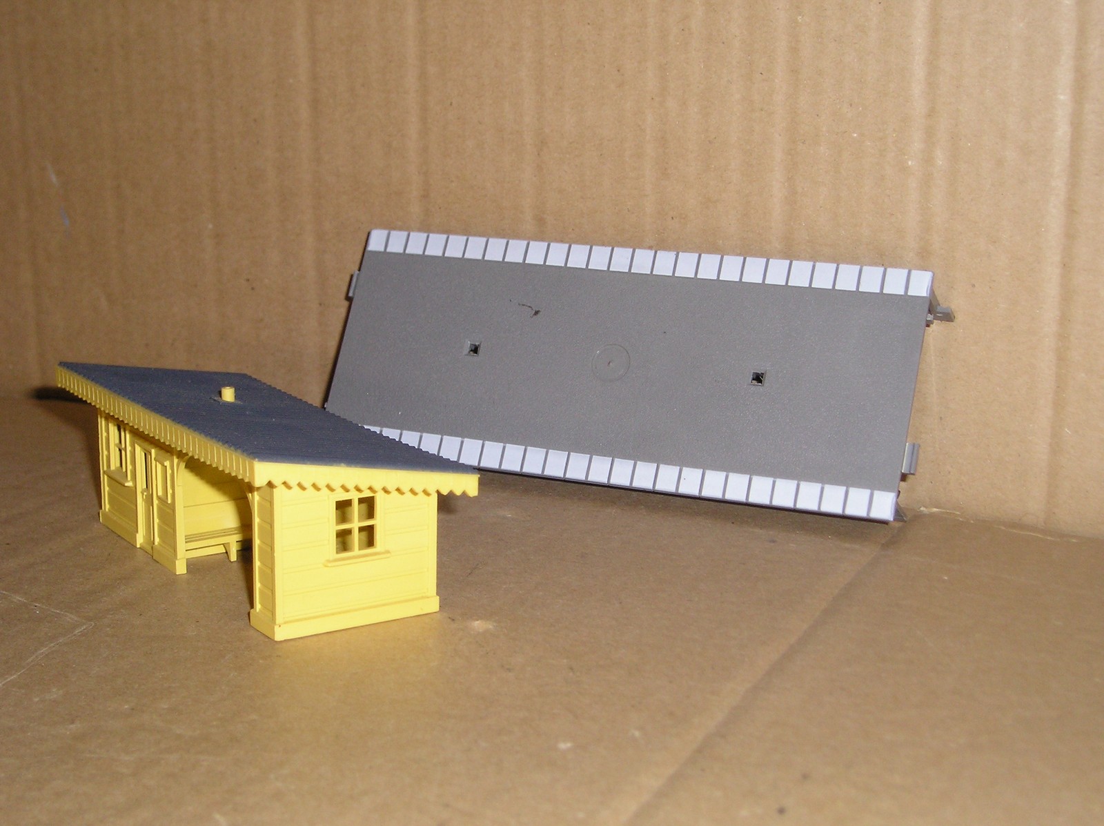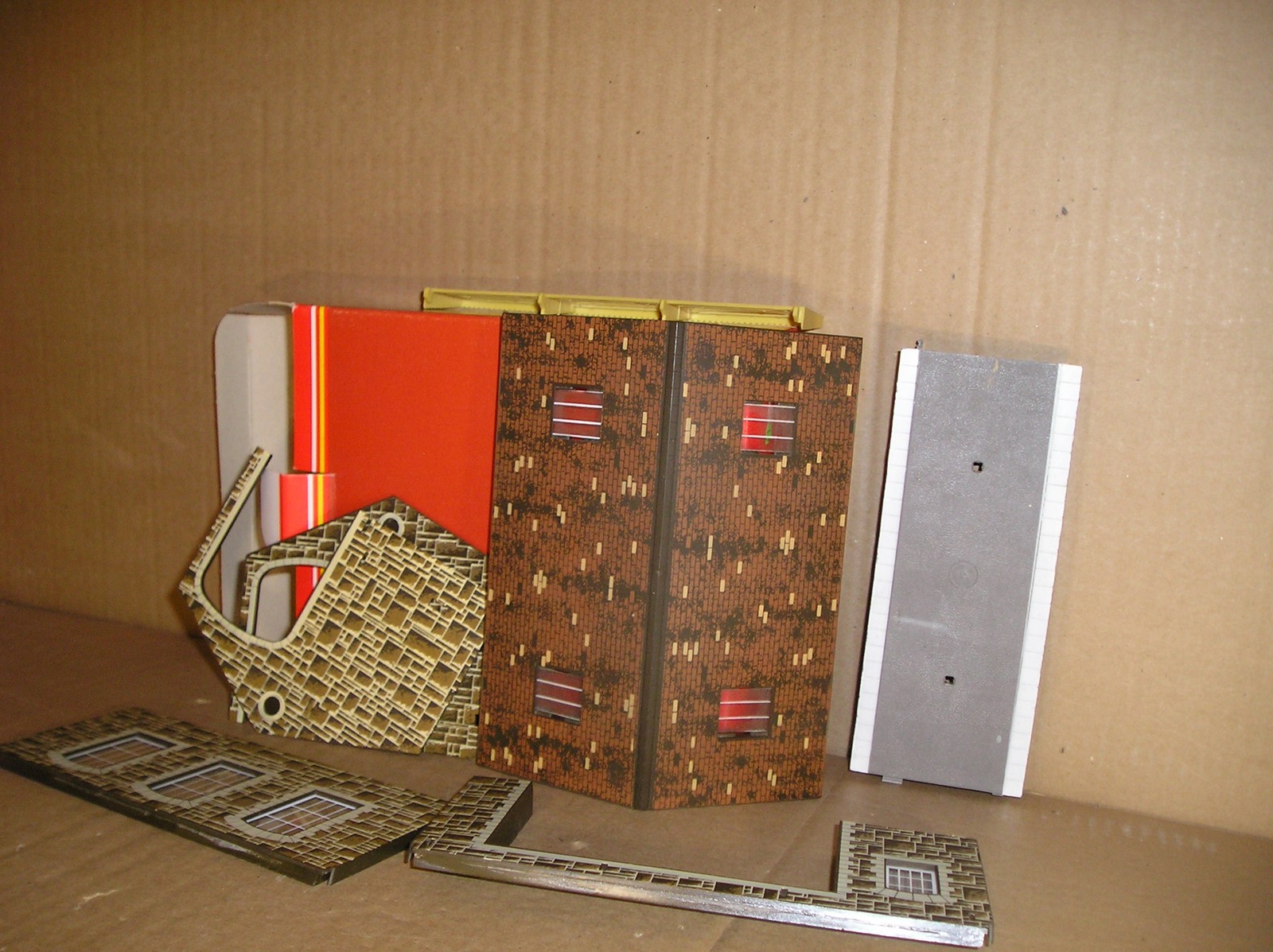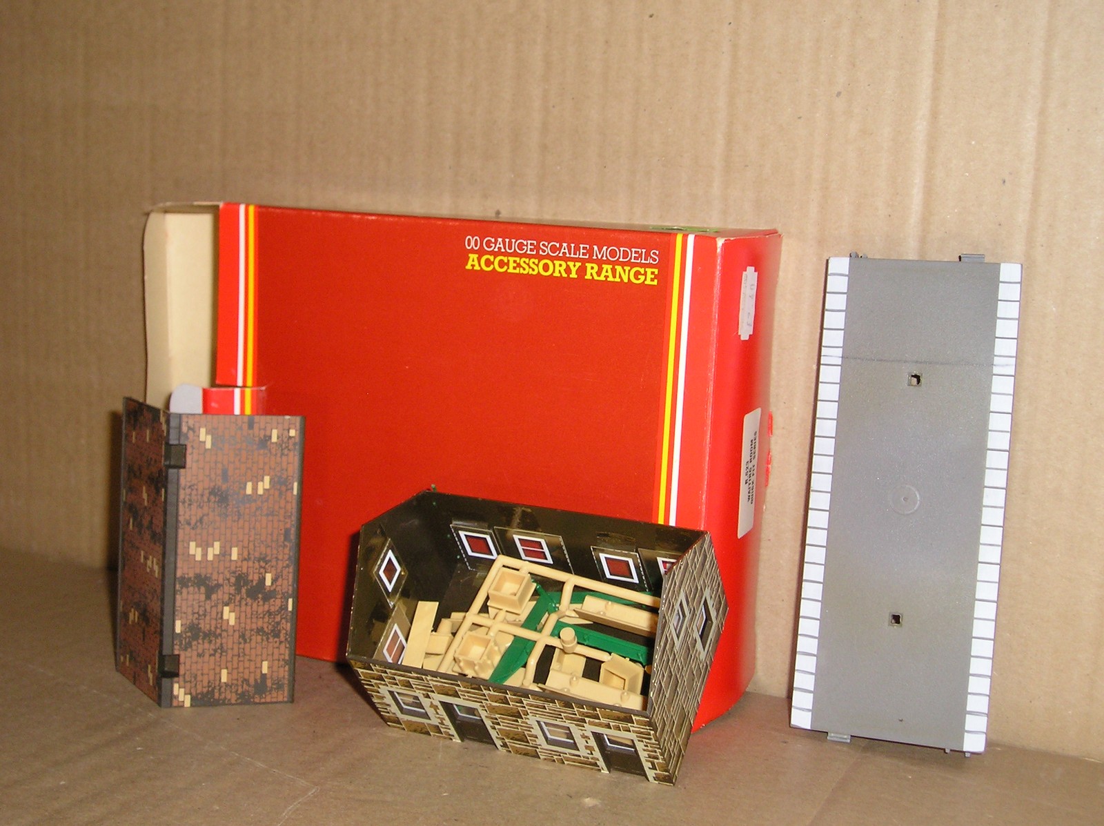 BB0003-6, Hornby job lot of station buildings, projects. R522 Goods Shed, R523 Waiting Room, R524 Booking Hall x 2, R538 Buffet & Bar and R590 Wayside Halt, all in kit form, all boxes have one or two label remains and maybe the odd defect, loads of parts to be added to buildings, but not sure if every last piece is there, as I think all the parts are mixed up. Offered as spares/repair, therefore no returns on this lot.