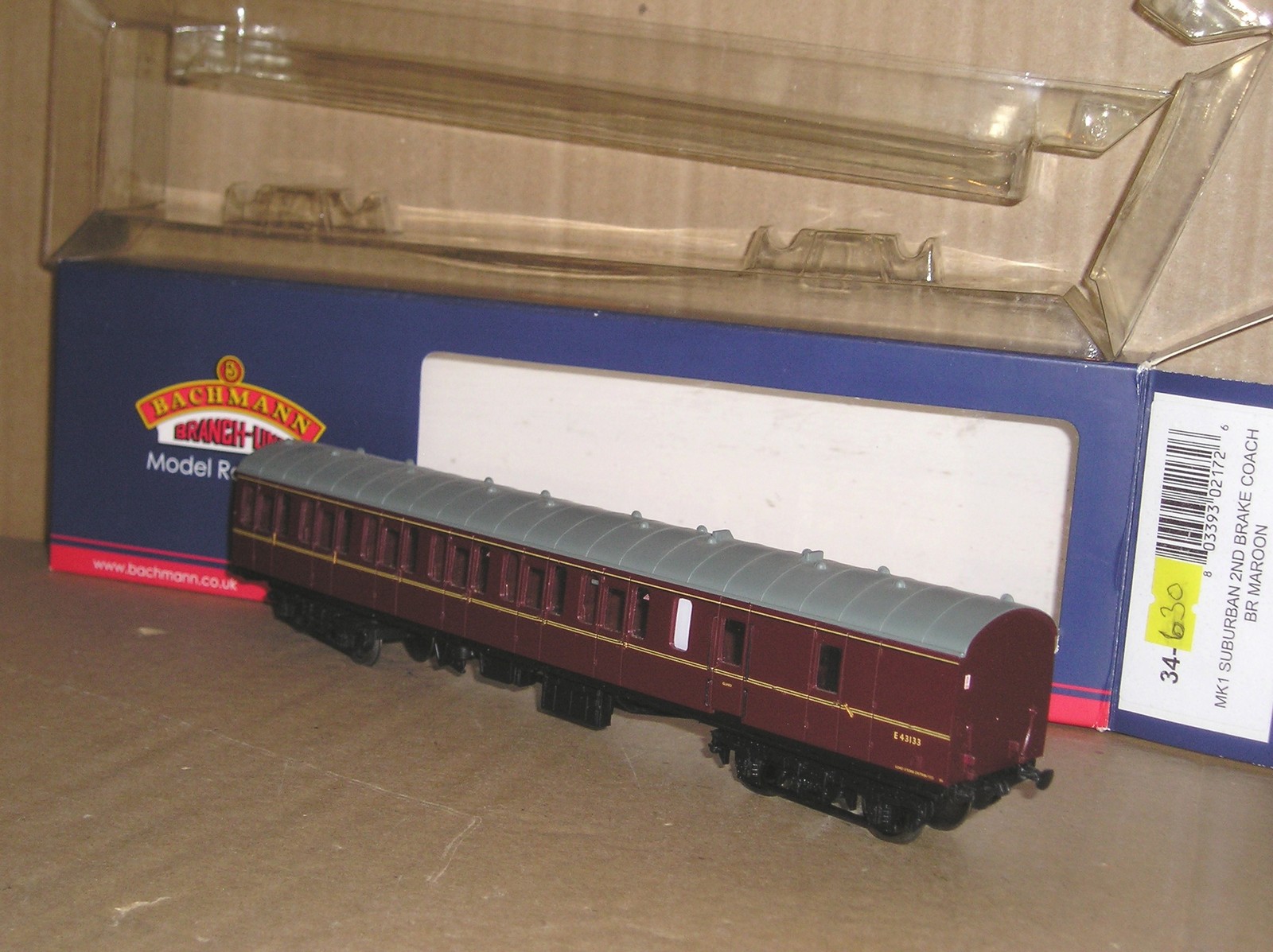 BC1018 Bachmann 34-630B Suburban Brake 2nd coach maroon, excellent used in wrong box. #E43133, no detail parts or extra couplings, if it should have any. Coupling missing at the Brake end.