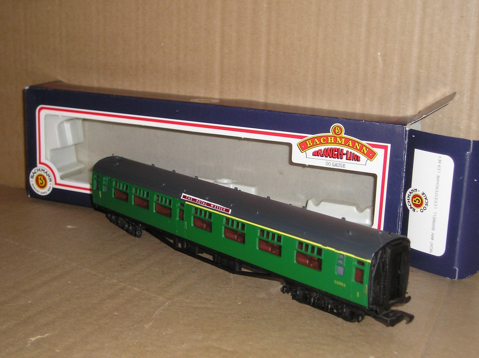 BC1075 Bachmann 34-550A 63″ BR(SR) Bullied Corridor Composite good/excellent used boxed, with Yellow First line. S5870S, with paper roof board “The Royal Wessex”