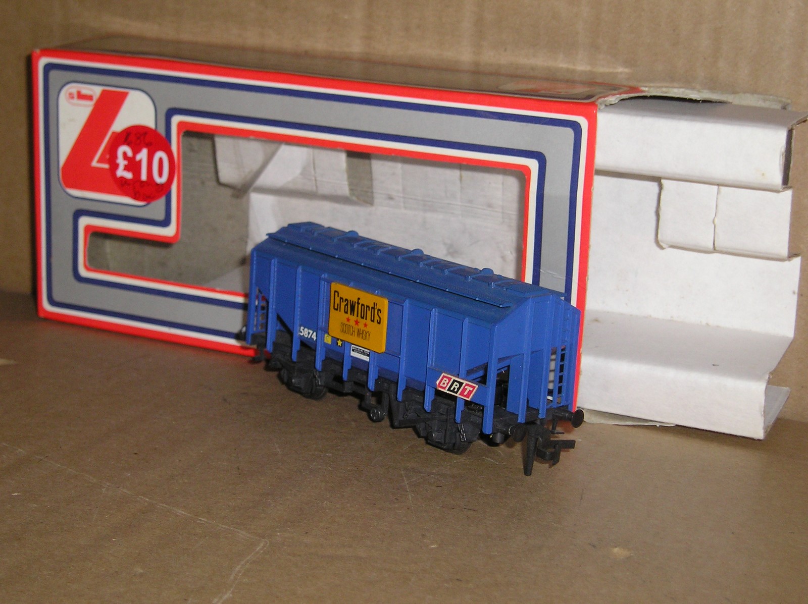 BW0367 (Lima box) Trix 1686 Bulk Grain wagon Crawfords #5874 excellent used wrong box, box showing its age. Missing a buffer, cardboard insert not complete. (metal parts may be showing the start of rust)