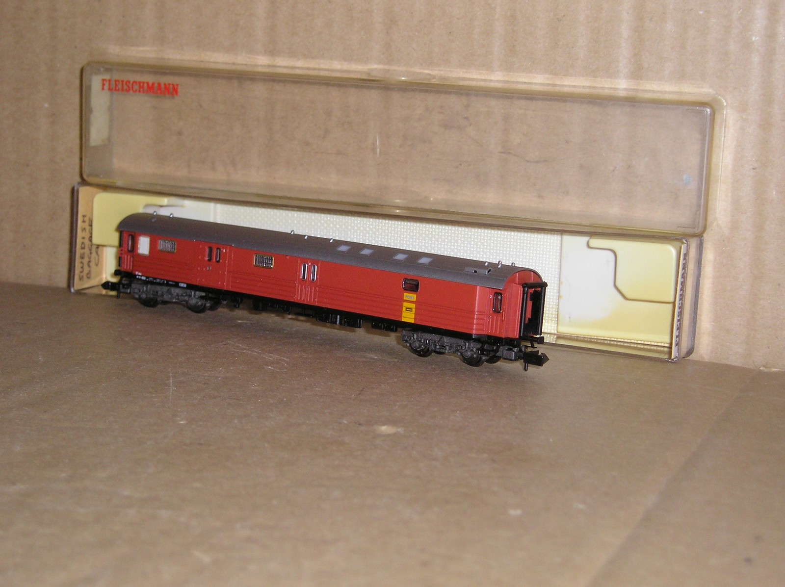 EC0049 “N” Fleischmann 8170? Sweden SJ DF39 baggage coach #SJ 4550, excellent used boxed, box lid has a crack on the side.