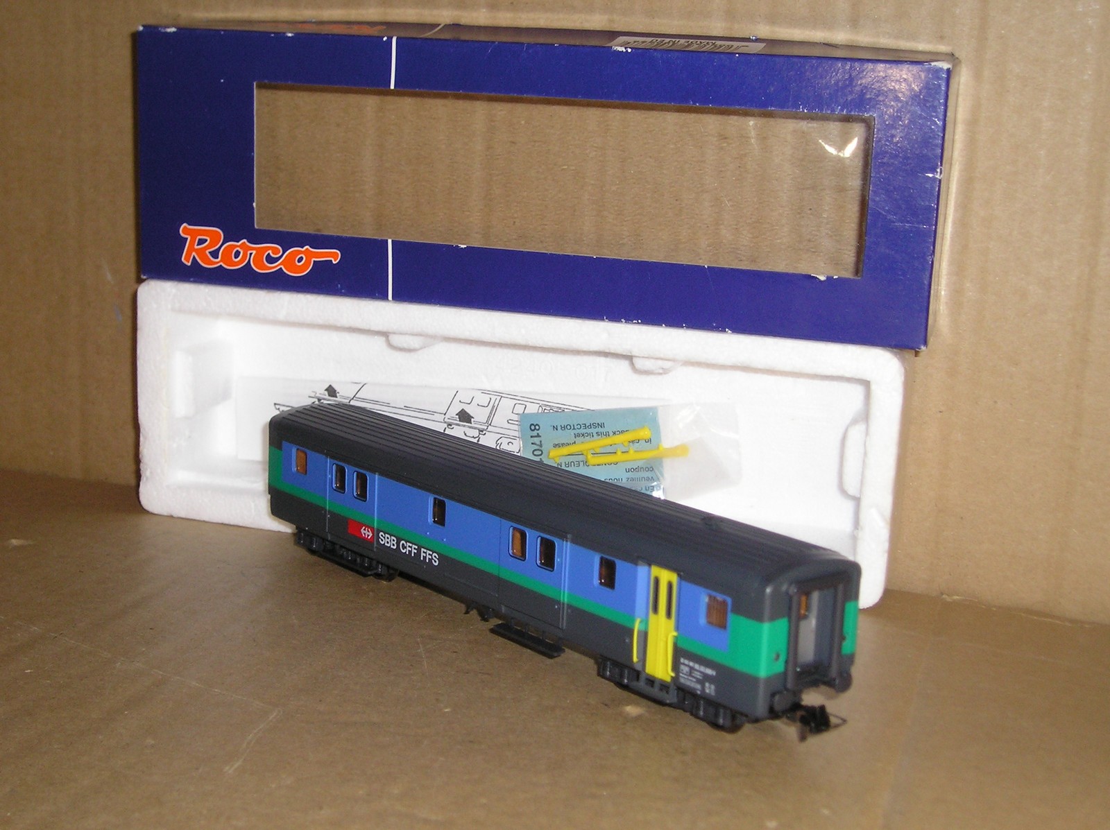 EC0239 Roco 45088 Swiss SBB EWI/II D Baggage Inter Regio livery good/excellent used unboxed, handrails and /door steps fitted, wheels look unused, #50 85 92-33 620-2