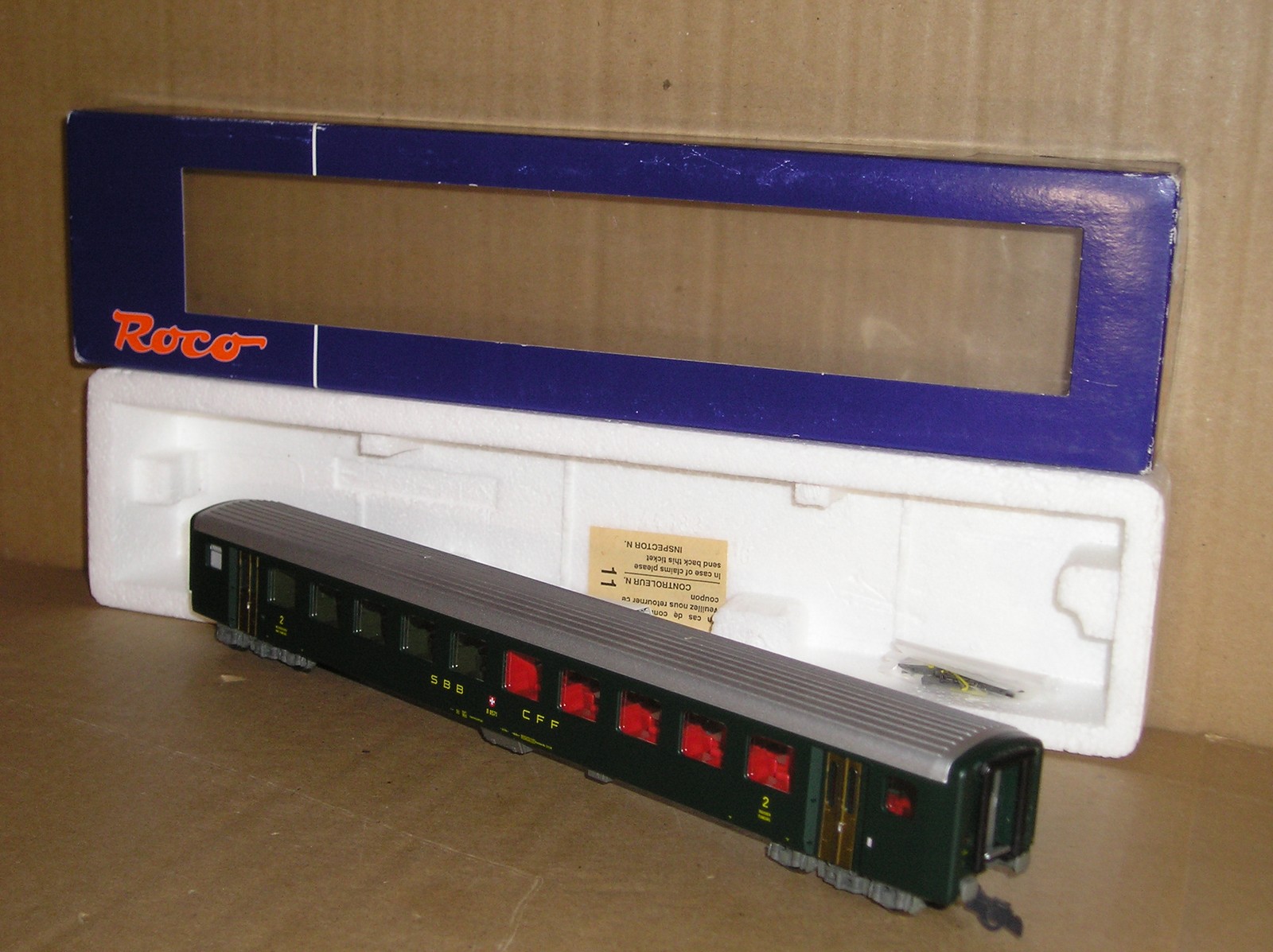 EC1100 “HO” Roco 45108? Swiss SBB EWI/II B coach, near mint/mint unused, wrong box?, unused detail parts. #B 8571