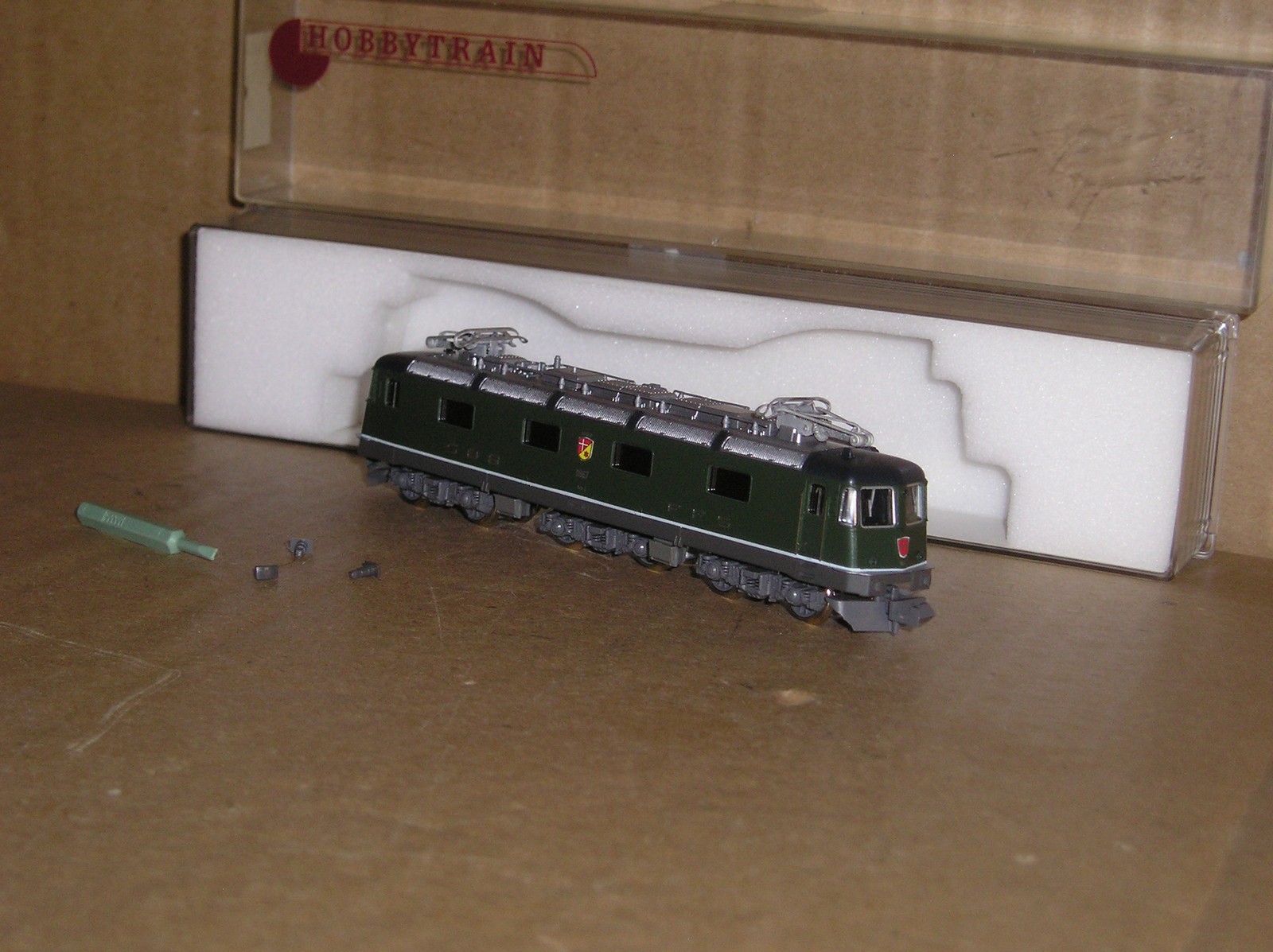 EL0250 “N” Hobbytrain 1101? Swiss SBB Re6/6 11667 excellent boxed, nice runner but as with all my powered offerings I still suggest it may benefit from an oil/service/good run as history of loco not known. Has other name crest stickers, missing a buffer, other 3 loose in box.