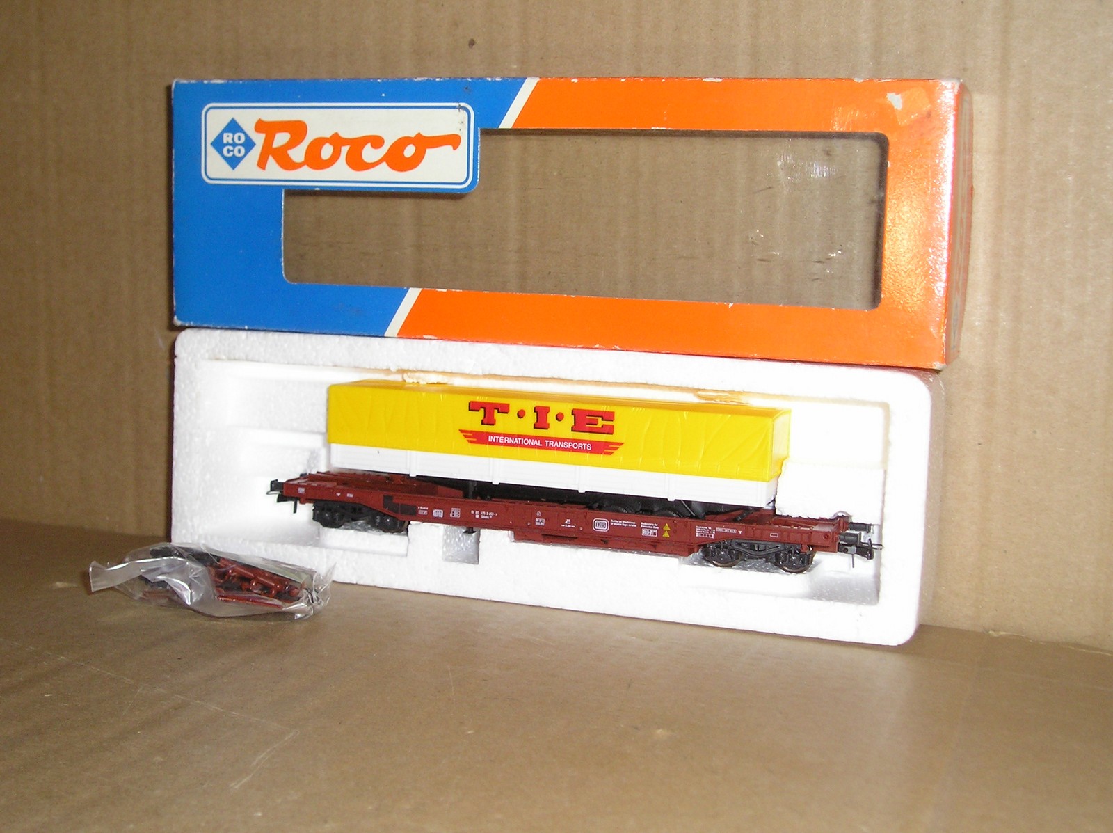 EW0099 “HO” Roco 46362 German DB pocket wagon and trailer, excellent used in wrong box. #81 80 475 3 453-7