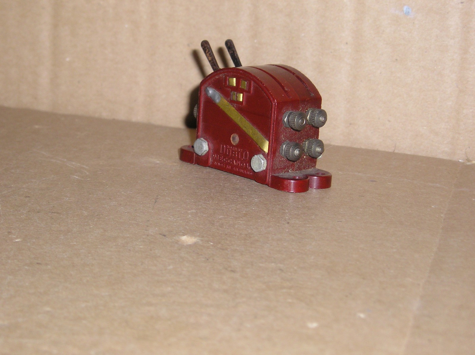 HD0222 Hornby Dublo D1 maroon switches excellent unboxed pair, these are old, because of age there will be some amount of surface rust on all levers but generally they are excellent. All of the nuts are present. These have the external metal strip.